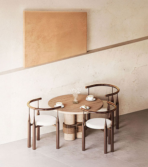Minimal cabinetry and warm finishes for daily living